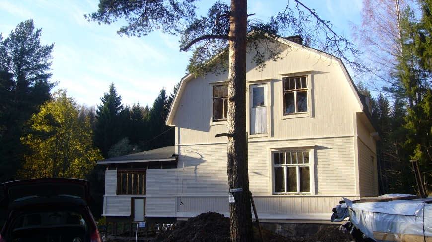 Alunperin 30‐luvun hirsirunkoinen talo Vantaalla. Vuoden 2011-2014 aikana koko talo entisöitiin ulkoa ja sisältä. Osa ikkunoista on alkuperäisiä ja puuttuvat on muokattu vanhoista puitteista sopiviksi.