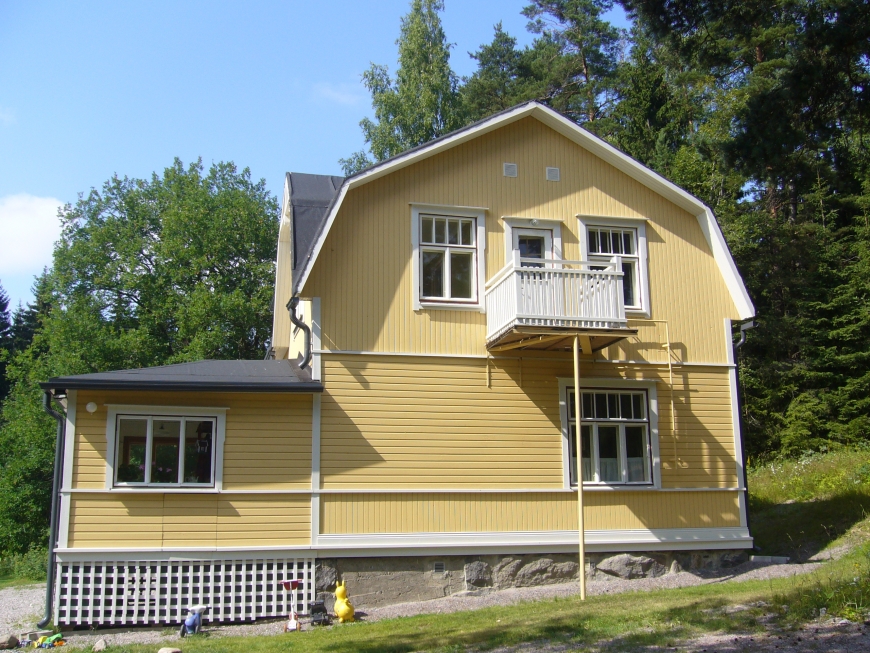 Alunperin 30‐luvun hirsirunkoinen talo Vantaalla. Vuoden 2011-2014 aikana koko talo entisöitiin ulkoa ja sisältä. Osa ikkunoista on alkuperäisiä ja puuttuvat on muokattu vanhoista puitteista sopiviksi.